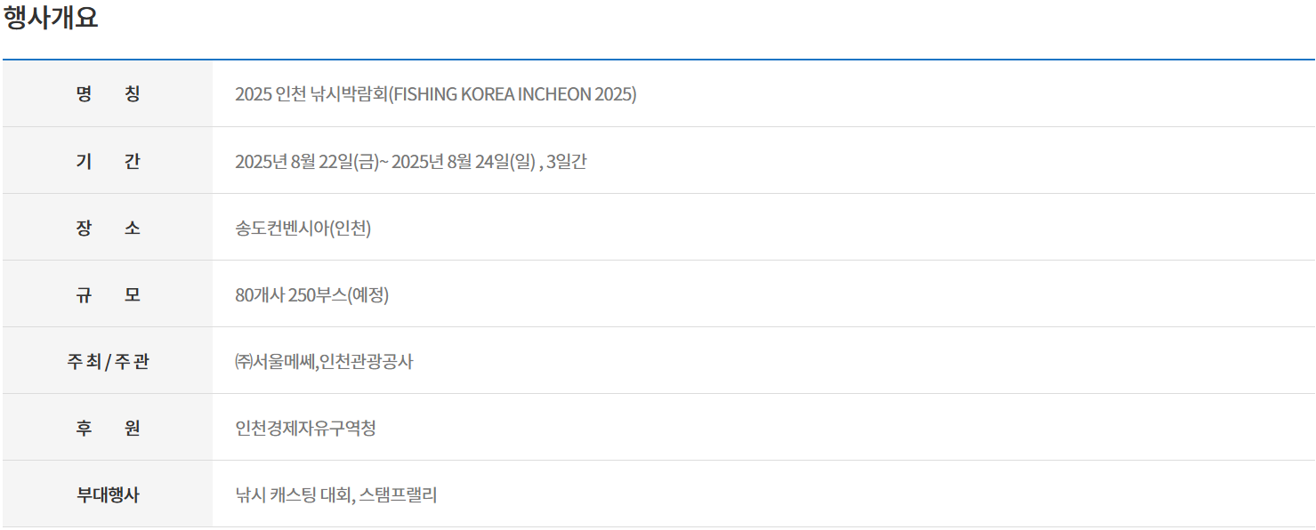 - 행사명 : 2025 인천 낚시 박람회 (FISHING KOREA INCHEON 2025)